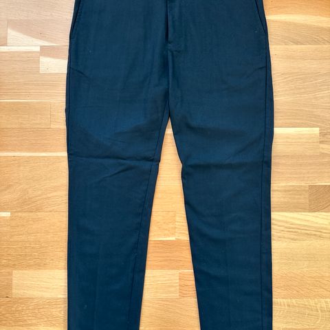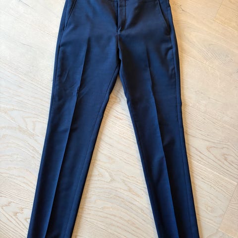 Slim fit dressbukse fra Zara, mørkeblå stripet. Strl. 48.