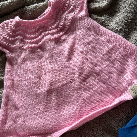 strikket kjole til baby 2-4 mndr