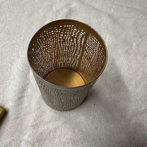 Lite brukt telysholdere fra Bloomingville. De er ganske skjøre så anbefaler å hentes. Er noen kanter som har «falt av» men på grunn av abstrakte mønsteret er det ikke så synlig.