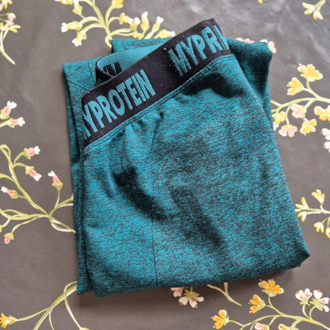 Str S. Blågrå treningstights fra My Protein. Denne tightsen har en stram stretch, og nupper ikke. Fin på, ikke gjennomsiktig. Glipper ikke bak, og om du bøyer deg. Lite brukt, som ny.