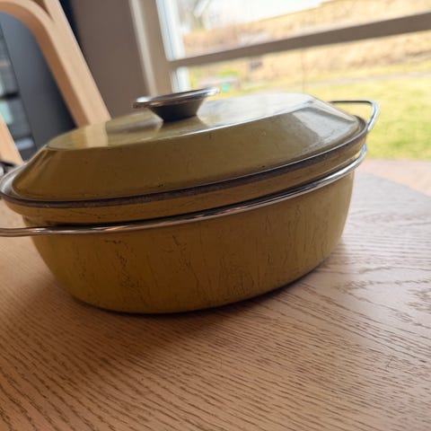 Emaljegryte fra Cathrineholm selges kr 80. Noe bruksmerker (se bilder).