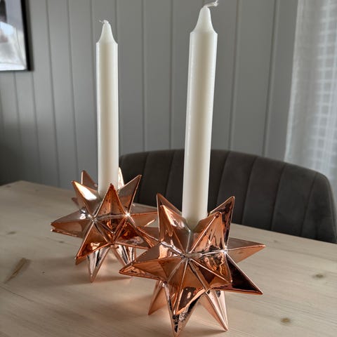 Smijern lysestaker i 2 høyder …23cm og 27cm høye.. Fine hytte lysestaker.. 100kr . Pluss frakt. Kan sende.
