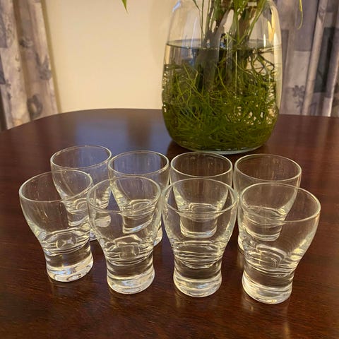 54 shotglass tilsalgs. Glass er ikke brukt. Mål står på glass.