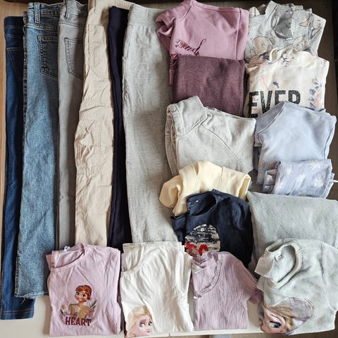 Bukser, skjørt, topper, jakker, kjoler, pysjer