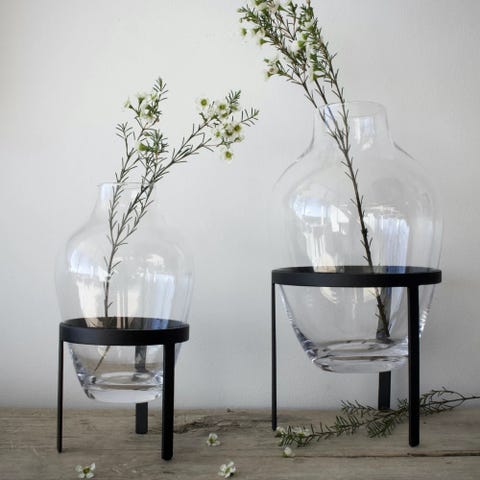 En vakker vase med messingstativ.