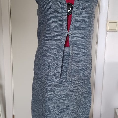 Hjemmestrikket drakt bestående av topp, skjørt og ponsjo i deilig mykt bomullsgarn som hverken stikker eller klør. Veldig tøyelig, men er strikket til str M. Utmerket håndarbeide. Selges kr 400,-(47) ♻️ Vil du se flere av mine annonser? Gå inn på brukernavn i annonsen, og deretter på brukerens annonser.