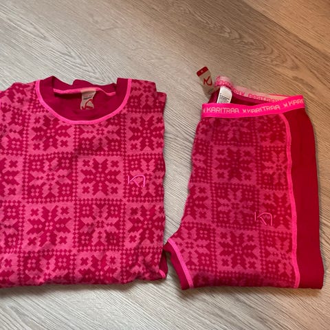 Kari Traa teknisk ullsett, str S. Pent brukt, og fremstår så godt som nytt med unntak av et hull nederst bak på det ene benet.