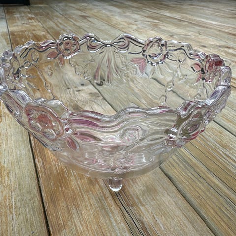 Walther Glas Mikasa Germany Carmen pattern clear and frosted crystal round serving bowl. Embossed flowers and frosted leave