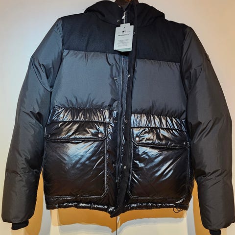 Jeg har en tjukk Woolrich vinterjakke i andedun som ikke brukes lenger. Den er i navy/mørkeblå farge, i størrelse medium (M).