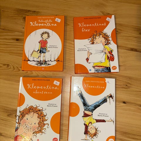 Vi selger masse leselyst! 7 bøker i serie, 1-7, av "Klementina" fra barnebokklubben. Topp tilstand, tilnærmet som nye, meget pent lest, stive permer, ingenskader på bøkene, alle bøker komplette, ingen skriving osv. Passer for barn fra 6 år og oppover, ifølge ARK.