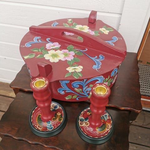 Flott rosemalt paraply, evt pyntestativ med 4 pyntepotter.