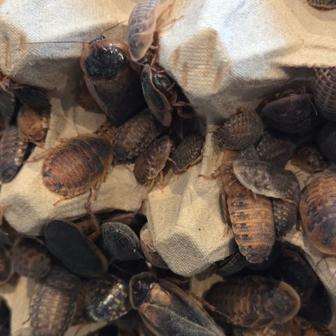 Har et lite oppdrett av dubia kakerlakker som mat til reptiler.