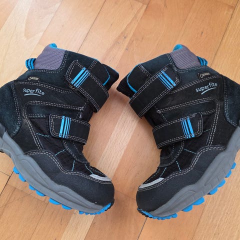 Skoene er i størrelse 37, de er svarte, mørkeblå og med noe sølv/refleks.