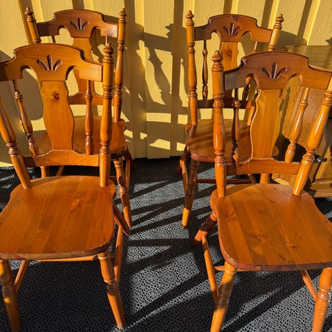 Gamle spisestoler, treng litt reprasjon noen av de. Kom med bud