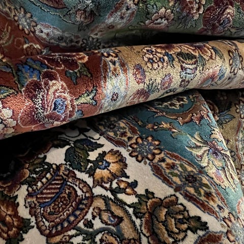 Dobbelt Kunstnerskap: Forener Kinkades nostalgiske "Painter of Light"-stil med årtusener av persisk (Iransk) teppetradisjon.