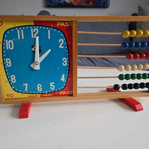 Retro kuleramme fra min barndom til salgs. Med klokke og bokstaver. Selges med original eske. I god stand.