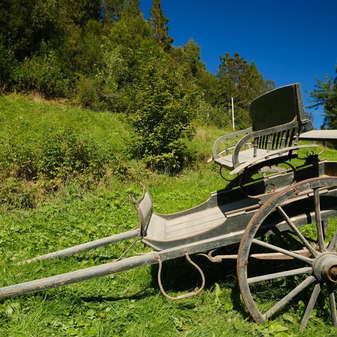 Eldre hestevogn selges, jeg er blitt fortalt at denne type vogn ble brukt som legevogn. Den er ikke strøken, men er hel og solid.
