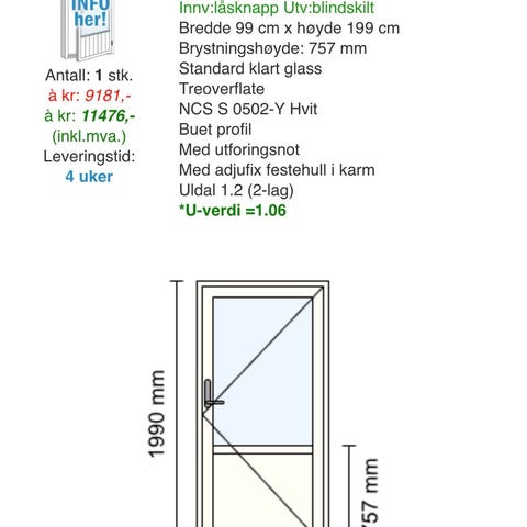 Selger Heilt ny balkongdør grunnet feilbestilling.