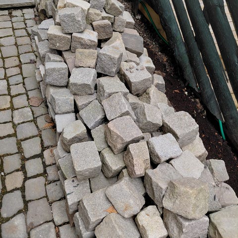 Et parti brukt smågatestein selges for kr 950,- pr. m².