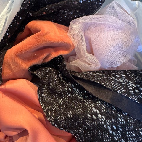 3. Stoff, klar til å klippes. Bare cordfløyel.