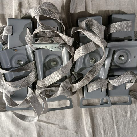 High-end holder med uttrekk og sving. Et solid og praktisk monteringssystem i svartlakkert 1,5 - 3 mm stål, med en sterk glideskinne (kulelager) og to kraftige nylonstropper med ITW Nexus spenner. Stativet er justerbart etter kabinettets bredde fra 12,5 til 23,5 cm, svingbart 360 ° og uttrekkbart. Holder kabinettet lett tilgjengelig og gir enkel tilgang til porter og kabler på baksiden. Fullt funksjonelt, pent brukt uten riper/ skader, svake spor etter festeskruer, ellers som nytt, kr 350.