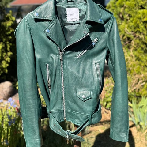 Kjempefint skinnimitasjon bikerjakke fra Mango i str XS, men kan passer også til noen som bruker str S. Med foring i kunstig skinn/pels som gjøre jakken varm. Perfekt til høst og vinter. 2 glidelåslommer. Veldig pent brukt.
