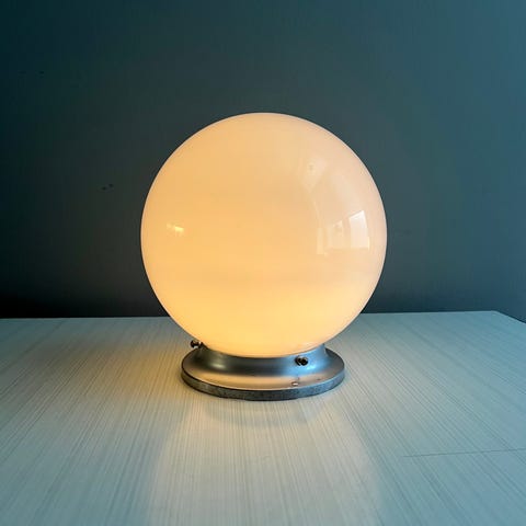 Kulelampe - Vintage - Retro - Industri - Belysning - Takpendel - Taklampe - Gjenbruk - Eldre Bygg - Gamle Lamper - Interiør - Glass - Opalin - Kuppel - Restaurant - Cafè - Bar - Spisested