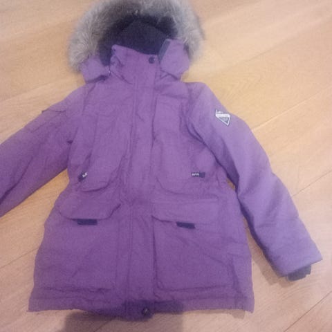 Pent brukt parkas i mørkeblå farge. Gode lommer foran begge sider, med fleece for, med glidelås og med borrelås. Innerlomme. Fleece på høy hals/ krage. Avtakbar hette og pels. Glidelås har løsnet litt nederst men påvirker ikke bruk, selger billig. Er nyvasket