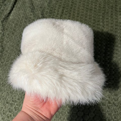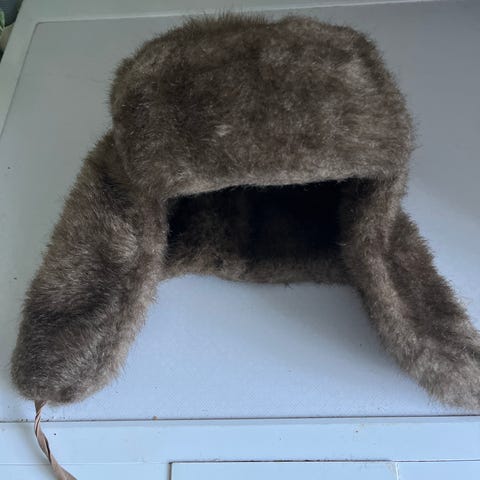 Passer alle hoder. Har snor innvendig til å evt stramme inn litt. Kan være buet eller rett i toppen.