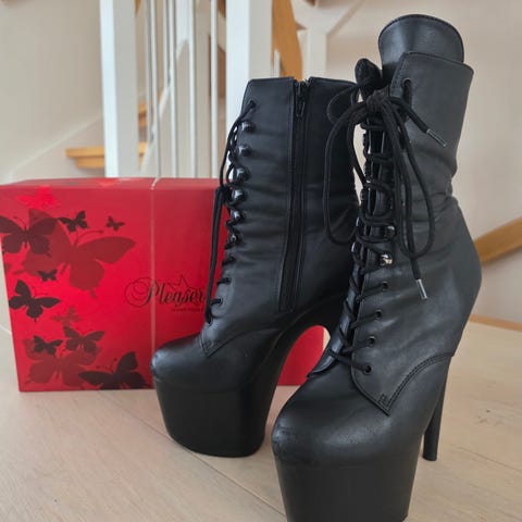 Ankel sko/støvletter med hæl og lisser.