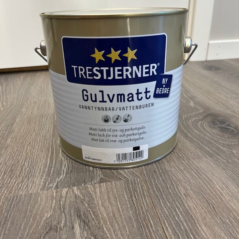 Dette er en anbefalt maling OGSÅ på vinylgulv Den har herdetid på 14 dager kontra 30 dager med den gamle trestjerners gulvmalingen som medfører at du raskere kan møblere etterpå. Den er dobbel så dyr som den gamle trestjerners gulvmaling men vedt det.