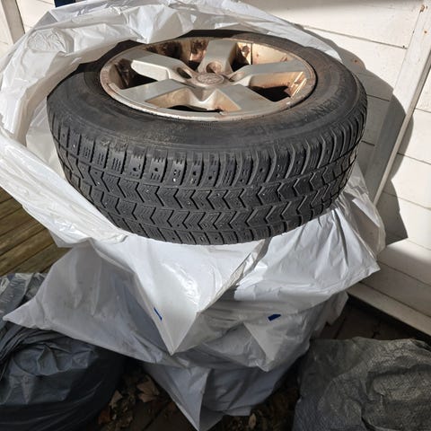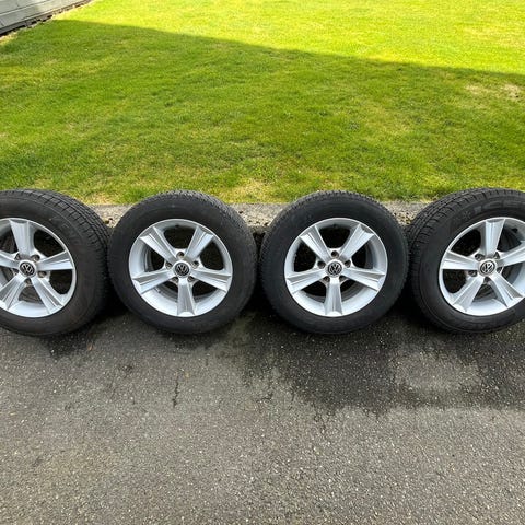 Selger felger med piggdekk. Kanskje ikke så mange pigger igjen. Felgene er ikke skadet. Ser nye ut. ET-nummer står på det ene bildet. Jeg har brukt disse på Golf 7.