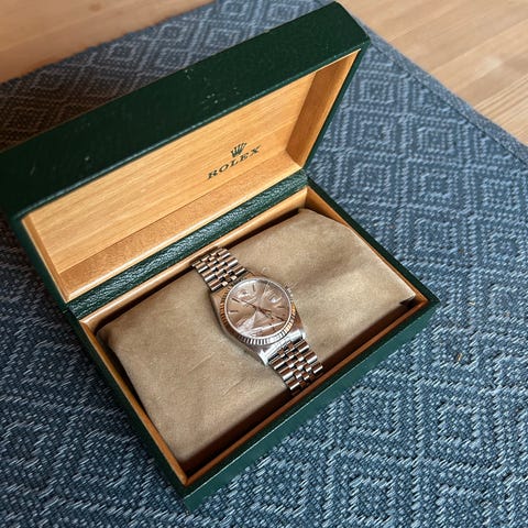Utrolig fin klokke!!! Og spessielt med jubilee dial! 10/10 i stand spør du meg, crisp og skarp i alle kanter, ingen skader, selger kunn klokken.