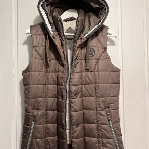 Lekker vest fra Pikeur med deilig pus på hetten. Hetten kan taes av. Str small, kan passe liten medium også. Lite brukt, hel og pen. God og varm, super å ri med.