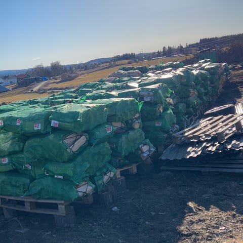 Langved selges også ferdig hugget 5-10 kubikk på bestilling.