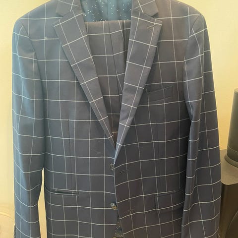 Dress fra Matinique. Svært pent brukt, kun brukt et par ganger. Mørk navy/blå, 50% ull. Bukser str. 50, blazer str. 48.