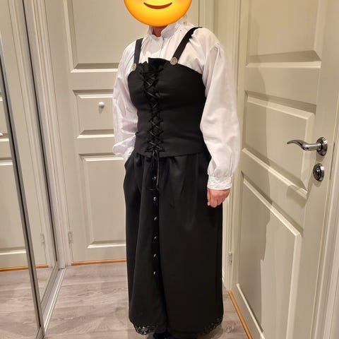 Det er flere år siden drakten ble sydd. Den har dessverre bare blitt hengende i skapet og nå er den for liten. Da er det på tide å skifte eier :-)