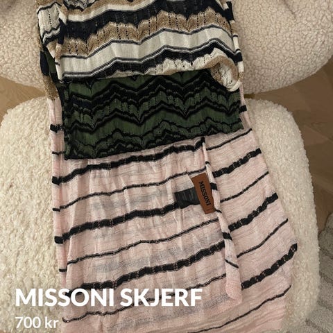 Flerfarget, Missoni, kjøpt i Roma, label falt av, str ca 27x190, lite brukt, selges kr 800.