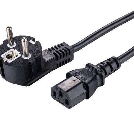 Topolet strømkabel med ujordet Euro-kontakt og trepolet med jordet kontakt. For tilkobling mellom enhet og stikkontakt. Passer blant annet til batteriladere, radioer og strømadaptere, noen TVer og skjerm.