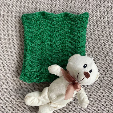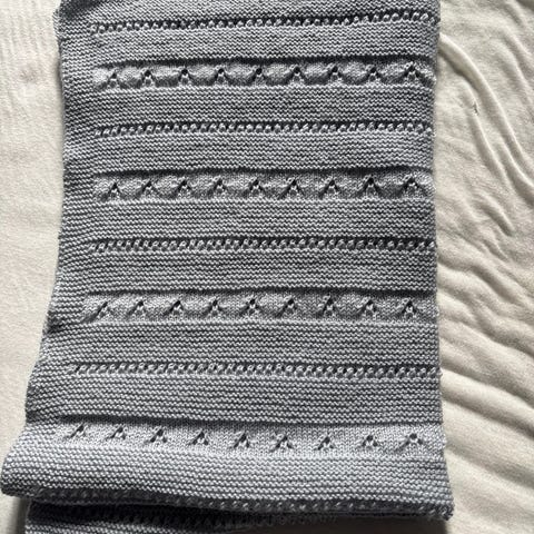 Tovet teppe til barn / babyteppe / vognteppe. Ikke brukt, men ligget nedpakket. Strikket og tovet. Selges for 250 kr pluss porto. Eks postnord 69 kr
