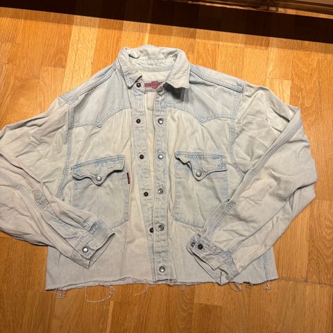 Vintage denimkjole fra det svenske merket Crocker, i perfekt stand. Med superkule kryssede stropper og glidelås i ryggen. Størrelsen er en liten Medium.