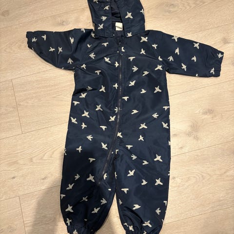Brukt av ett barn en sesong. Jeg ser ingen spesielle bruksmerker eller feil, bortsett fra det som er vist på det siste bildet. Ekstra knapper følger med! Hetten kan tas av.