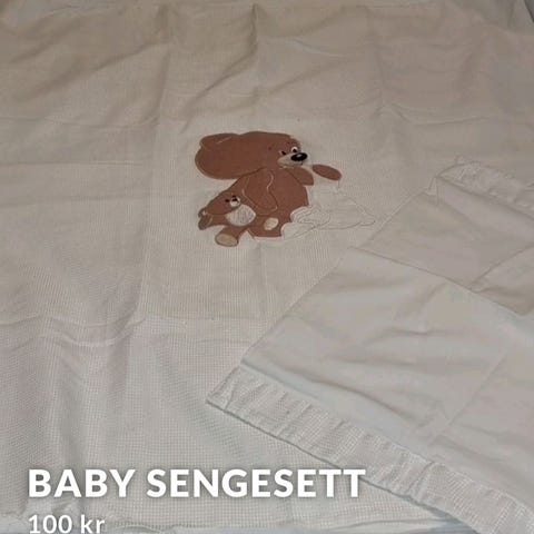 Fargerikt sengesett til barneseng selges ubrukt. Mål på dyne: 120x60cm. Pute: 35x55cm. Kjøpt på Ikea.