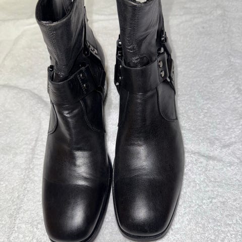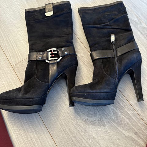 Disse skoene er laget av skin. Kjøpt nye og brukt kun i flere timer til fotografering. Fremstår som helt nye bortsett fra de små avskrapninger helt nederst på healene (se bildet). De var veldig behagelige å ha på foten. Selges pga ble for trange etter fødsel.