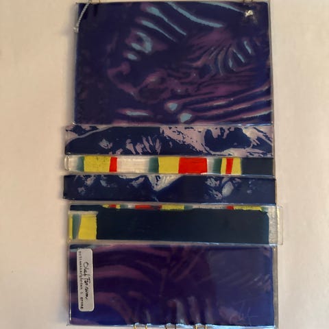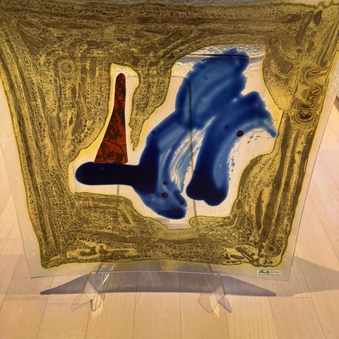 Glasskunst/fat laget av Oluf Føinum selges kr.700.