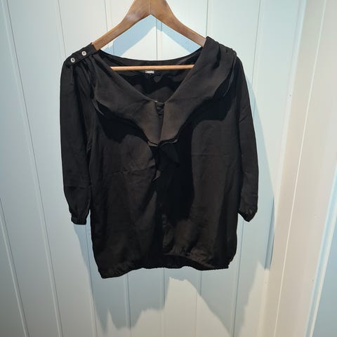 Svart bluse med blonde detaljer og gjennomsiktige ermer fra Zavanna i str. 38.