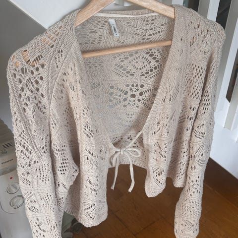 Hvit singlet/overdel/topp med heklet frontstykke og bakstykke fra HM+ i str. XL.