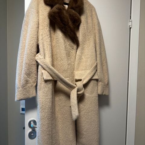 Kåpen har dessverre ikke blitt oppbevart riktig og er tørr i skinnet og derfor revna på ene armen og under begge ermerne i sømmen. Tok den med til en bunt maker i Tønsberg og hun anbefalte at sy den om til en vest, puter, lue eller pledd.