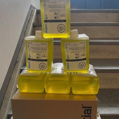 Desinfeksjon fra plumbo, koster rundt 129kr i butikken. Jeg har en del