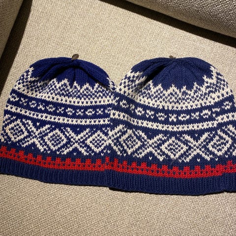 Håndstrikka lue sett, gutt/jente tvillinger, 6/8 år